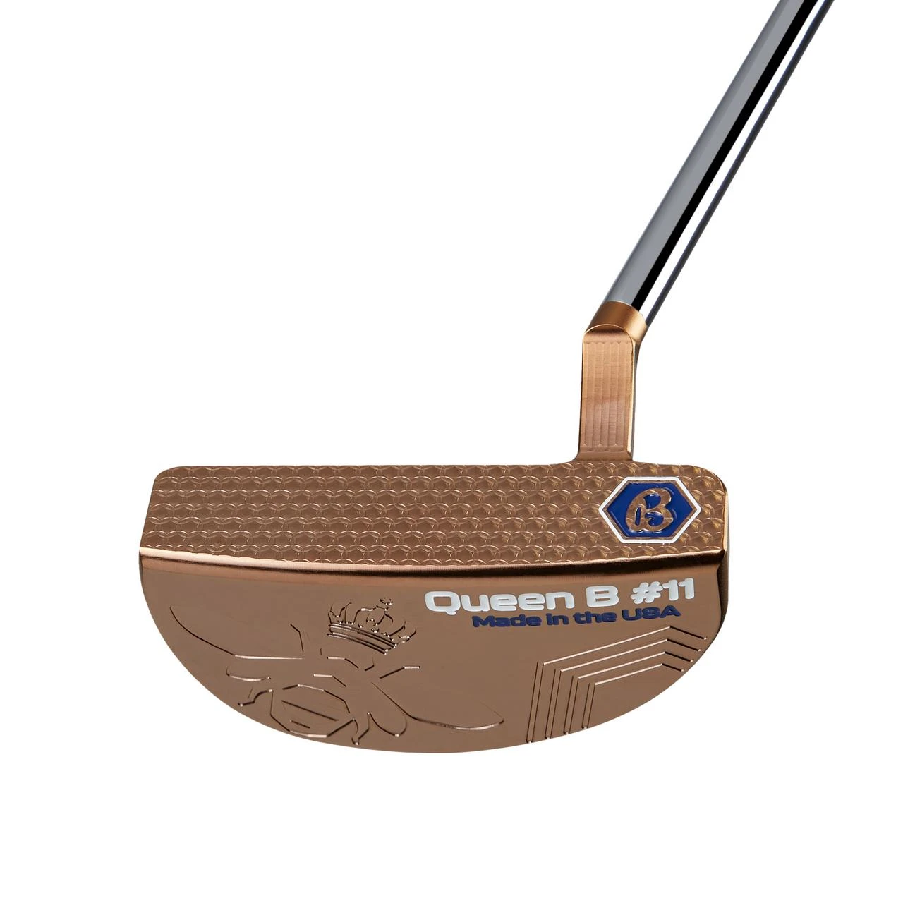 The aesthetic charm of the Queen B series gives golfers the confidence-inspiring appearance that helps channel the Tour-winning heritage of this world-renowned lineup. Precision-milled from a single block of Soft Carbon Steel to 362 grams, each elegant Queen B model features RJB’s esteemed Micro Honeycomb™ Face Milling, developed for players who are conscious of speed and prefer a firm and responsive feel at impact. This expertly-designed collection that is entirely milled in the USA is completed with our all-new, stunning and durable Rose Gold PVD finish, and complemented by a sapphire blue and white paint scheme. Each Queen B series putter is paired with a matching headcover, Tour-grade shaft, and a Lamkin SINK Fit sapphire blue grip in both standard and jumbo sizes, to combine professional components with a modern design.